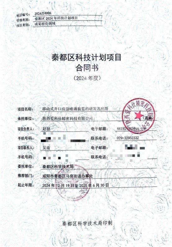 經(jīng)過公司科研團(tuán)隊(duì)的辛勤努力與積極申報(bào),愛科仕公司移動(dòng)式井口應(yīng)急噴淋裝置的研發(fā)及應(yīng)用成功獲批咸陽市秦都區(qū)2024年科技計(jì)劃項(xiàng)目,并獲得2024年秦都區(qū)科技計(jì)劃項(xiàng)目成果轉(zhuǎn)化類經(jīng)費(fèi)補(bǔ)助...