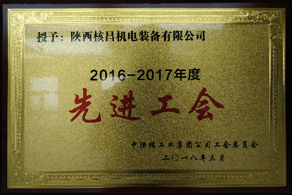 中陜核工業(yè)集團(tuán)公司工會委員會“2016-2017年度先進(jìn)工會”稱號