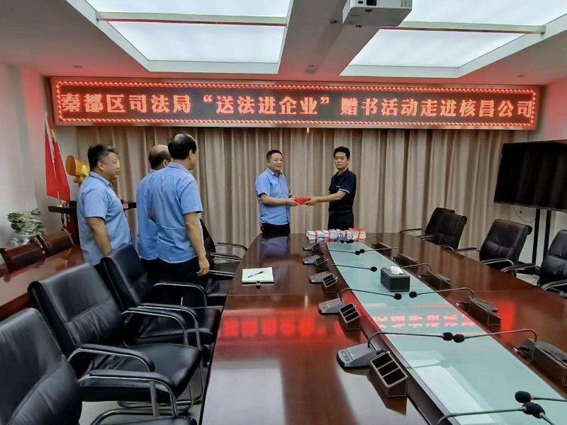 企業(yè)在市場風浪中穩(wěn)健前行,離不開法治護航;員工在企業(yè)大家庭中建功立業(yè)、成才成長,離不開法治護佑。7月27日上午,秦都區(qū)司法局副局長李強一行開展“送法進企業(yè)”贈書活動,為核昌公司提高企業(yè)防范和化解法律風險能力,以法治力量護航企業(yè)高質(zhì)量發(fā)展提供動力。
