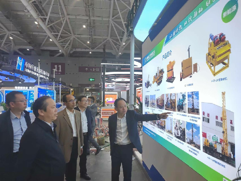 展會(huì)上,公司黨委書記、董事長(zhǎng)王超宏向集團(tuán)公司一行領(lǐng)導(dǎo)及觀展人員詳細(xì)介紹了參展設(shè)備的性能、主要特點(diǎn)及適用范圍。參展的HXY系列拖車鉆機(jī)組是專門針對(duì)砂巖鈾礦地質(zhì)勘探和開采孔研制的升級(jí)產(chǎn)品,在人機(jī)協(xié)調(diào)、安全性、操控性能上得到了充分提高,杜絕了全液壓巖心鉆機(jī)功耗大、維修要求高的缺點(diǎn),能夠滿足繩索取心的工藝要求。與國(guó)內(nèi)外同類鉆機(jī)相比,在進(jìn)尺速度、上下鉆速度、孔底壓力控制、鉆進(jìn)參數(shù)顯示和控制方面具有顯著的特點(diǎn)。目前,該系列產(chǎn)品已廣泛應(yīng)用于核工業(yè)203所、核工業(yè)243大隊(duì)、核工業(yè)208大隊(duì)等野外施工。