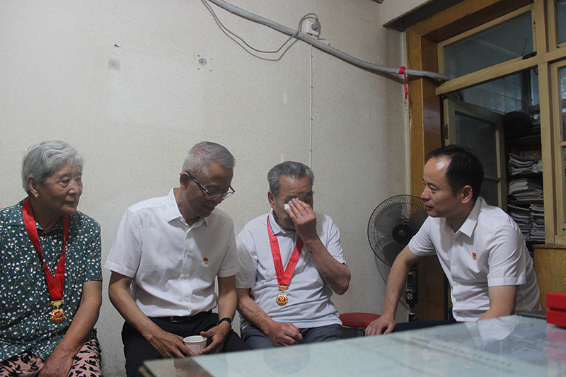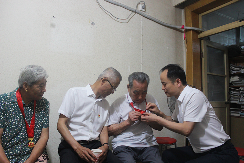 在小區(qū)離退辦,王建國詳細(xì)詢問了老人們的身體狀況、生活情況,囑咐老人要注意保重身體,并叮囑隨行人員一定要結(jié)合黨史學(xué)習(xí)教育,帶著感情、帶著責(zé)任幫助他們解決實(shí)際困難,落實(shí)好各項(xiàng)政策,照顧好日常生活,讓他們切實(shí)感受到組織的溫暖、幸福愉快地安享晚年。他為在黨50年的老黨員們親手佩戴了黨中央頒發(fā)的“光榮在黨50年”紀(jì)念章,并與部分老黨員進(jìn)行了座談。佩戴上黨章的老黨員們熱淚盈眶,激動(dòng)地唱起《沒有共產(chǎn)黨就沒有新中國》等革命歌曲,慷慨激昂的旋律,高亢熱情的聲音,彰顯了老一輩共產(chǎn)黨員初心不改的熱忱。大家紛紛表示深切感受到了以習(xí)近平同志為核心的黨中央的關(guān)懷和溫暖,要始終牢記黨的宗旨,聽黨話、感黨恩、跟黨走,力所能及地發(fā)揮老黨員的余熱,用實(shí)際行動(dòng)為公司高質(zhì)量發(fā)展鼓勁加油。