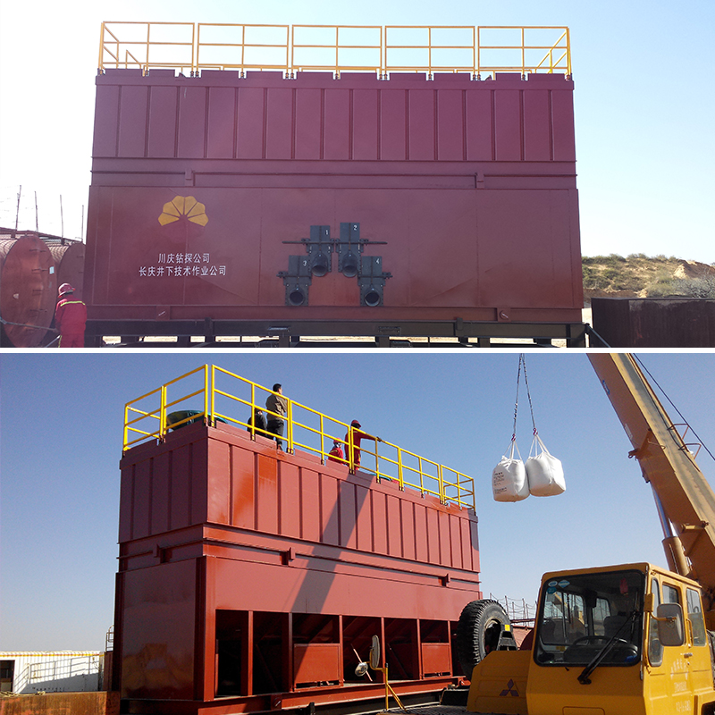 100立方沙漏主要用于石油鉆探壓裂,此設(shè)備可將大量壓裂鉆探所需的砂礫或者陶粒進行整裝分層儲備,配合取砂車進行石油壓裂鉆井作業(yè),效率大幅度增加。